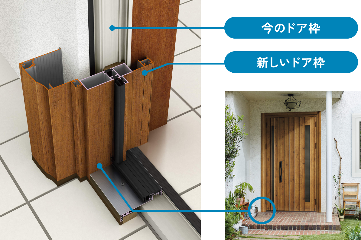 既存の枠の上から新しい枠をかぶせて、新たなドアを取り付けるだけ。